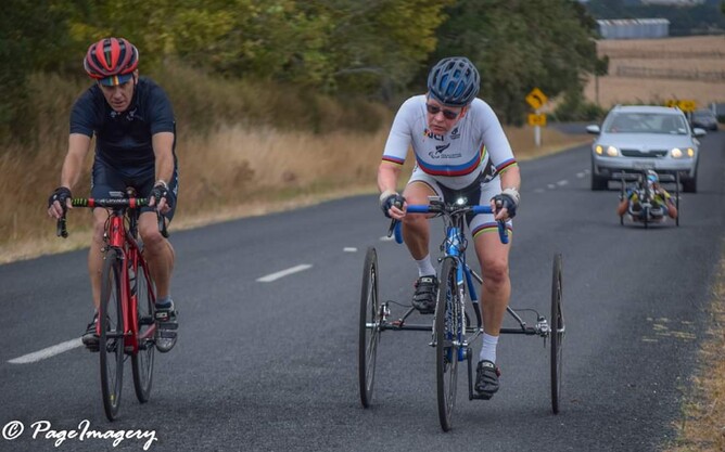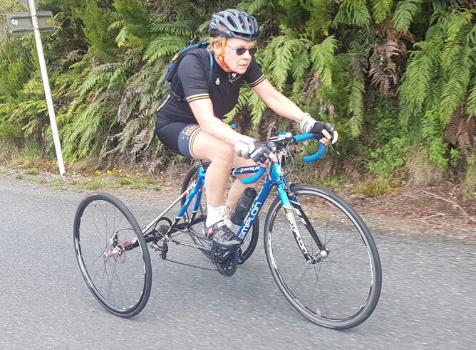 Bev May women's tour, well organised by the Mays, 2 stages on 1 day, a first for me on the trike: first stage quite hilly, I did well, much faster than last year. BUT THEN the second stage, was a disaster because I had severe ataxia right from the start. Just managed to finish it.