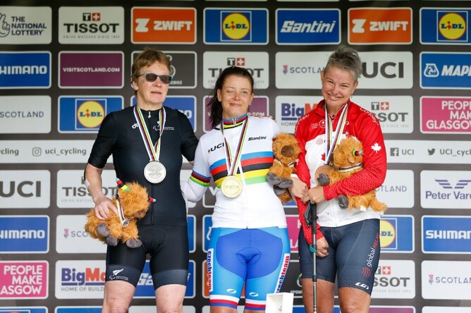 This was followed by two world cup races in Oostende. Unfortunately in both races I suffered bad ataxia which saw me unable to finish one race and low in ranks in the other. However because of my good results in Italy I was elected to go to the World Champs in Scotland in August. Unfortunately the road team did not have enough time to get used to the time zones and only 5 days after arrival we already raced, I ended up with a cold but still managed two silvers in the time trail and road race.