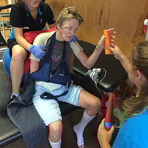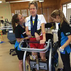 The severe traumatic brain injury which she suffered has produced difficulties with many aspects of mobility and life: ataxia, sudden involuntary movement of limbs, lack of balance, coordination, no proprioception. She was unable to speak and patiently re-learned it. She was left with no short term memory, double vision, and other mental and physical problems.