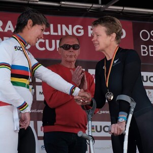 Eltje Malzbender was recently been selected for the Para-cycling Road World Championships in Italy. She has recently gained her NZ Citizenship after living and working in NZ for over 18yrs. She worked for the Waikato DHB as physiotherapist at the Te Kuiti and Taumarunui hospitals for 15yrs, and then in private physio practice serving Te Awamutu and Waikeria prison. She has been passionate about her job, trying to use her skills to make a difference to peoples’ lives, and about cycling. She used every spare minute out on her bike, enjoying being out there, enjoying New Zealand fresh air and countryside.