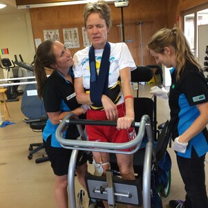 The severe traumatic brain injury which she suffered has produced difficulties with many aspects of mobility and life: ataxia, sudden involuntary movement of limbs, lack of balance, coordination, no proprioception. She was unable to speak and patiently re-learned it. She was left with no short term memory, double vision, and other mental and physical problems.